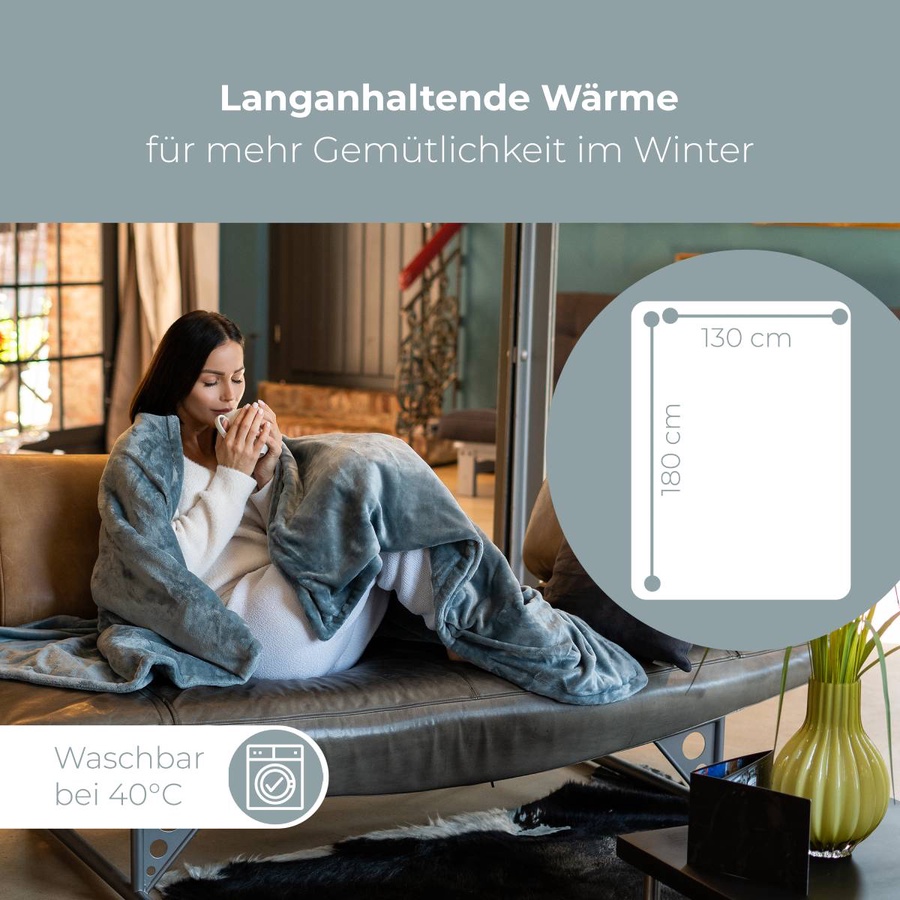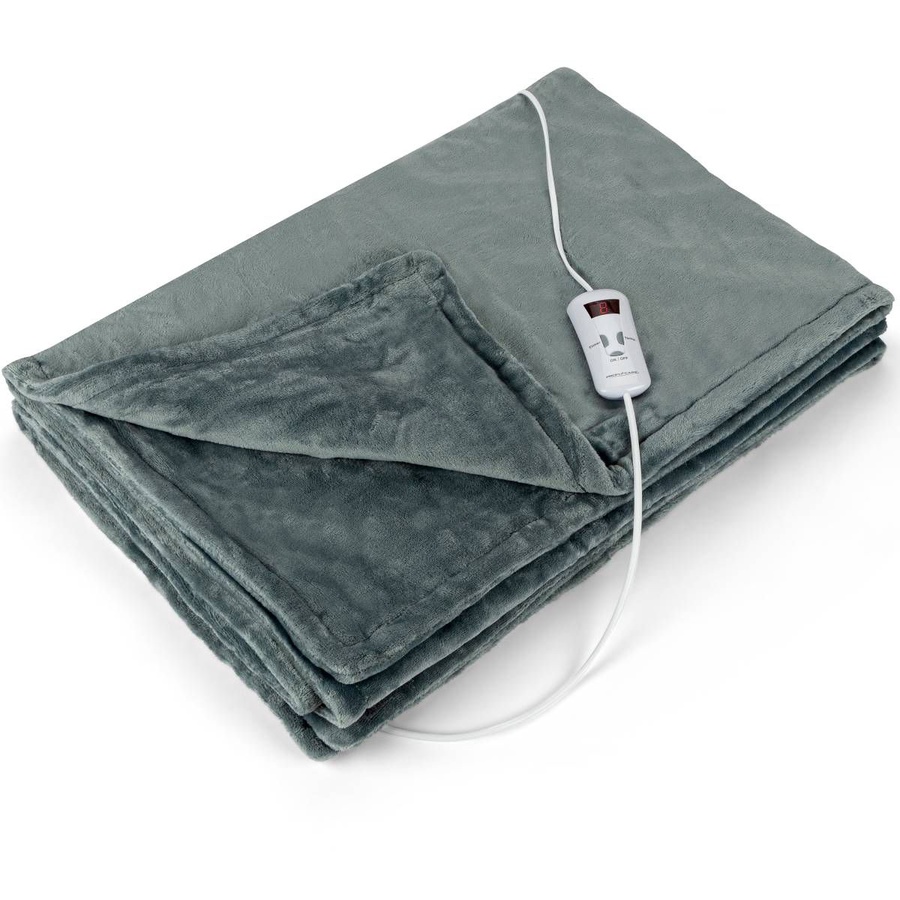 بطانية تدفئة ProfiCare 180W (رمادي). تسخين سريع، 10 مستويات حرارة، ومؤقت 9 ساعات. قابلة للغسل، حجم 130* 180 سم، مع حماية من السخونة الزائدة.